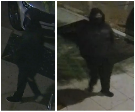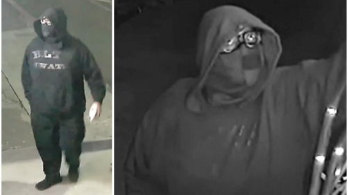 Surveillance cameras on each of the properties captured footage of the suspect. The suspect always arrives on foot during the early-morning hours, completes the vandalism using black spray-paint, and leaves on foot. The victims have been the target on numerous previous incidents.
