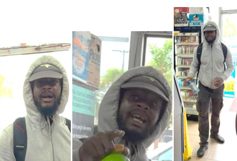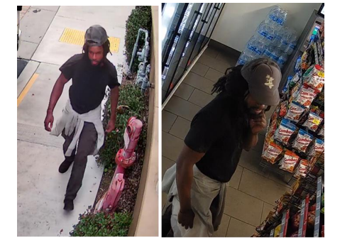 The suspect is described as a Black male, 30 to 40-years-old, 5’7’’ to 6’ tall, 175 lbs., with long braided black hair, brown eyes and missing an upper tooth. He was wearing a light gray hoodie, gray trucker hat with a white mermaid logo, dark cargo pants and dark shoes. On October 4, 2024, the suspect was last seen on surveillance footage getting off an Amtrak train in the City of Irvine at 4:30 PM, walking northbound on Barranca Parkway. Out of an abundance of caution, the public is advised not to approach the individual if seen, as he is considered dangerous.